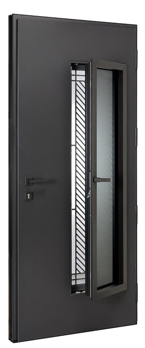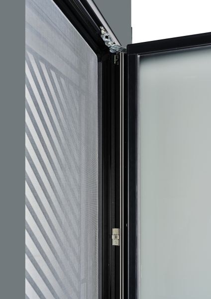 | Décor de base | Face extérieure, la porte est composée d'une grille couleur noir 2100 texturé. |
