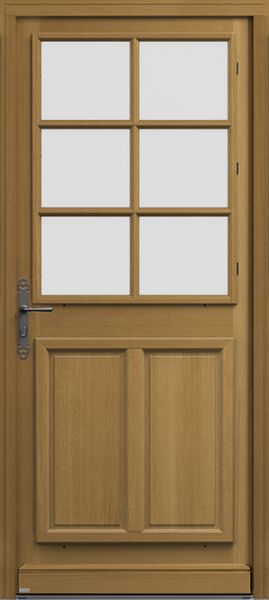 | Décor de base | Porte mi-vitrée avec châssis ouvrant et cadre petits bois 2 faces 6 carreaux. Vitrage isolant transparent classe 2. Remplissage gaz Argon. En option : volet mobile disponible. |