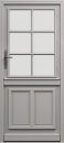 | Décor de base | Porte mi-vitrée avec cadre petits bois 2 faces 4 carreaux. 1 poignée face extérieure et intérieure. Vitrage isolant transparent. |